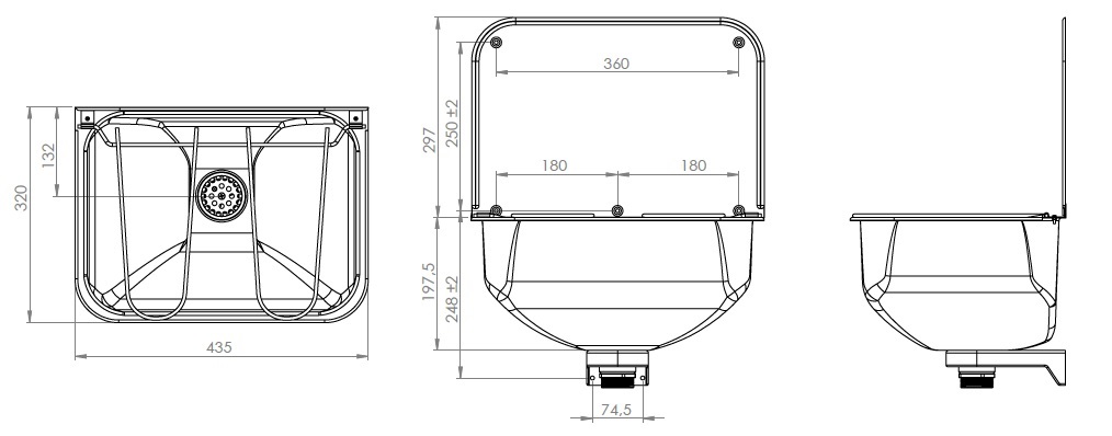 Stainless Steel bucket sink. Supplied with splash back and fitted with a fixated swing back bucket tray. Including 1½” waste plug.