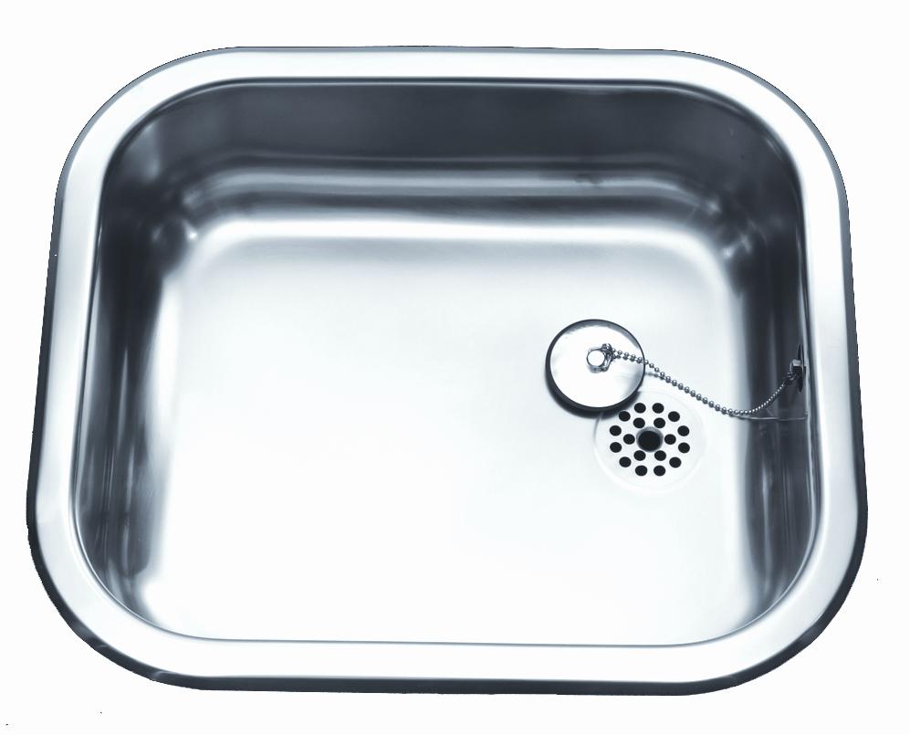 Kjøkkenvask, 1 kum for nedfelling eller underliming. Leveres med plugg og overløp. Uten vannlås.